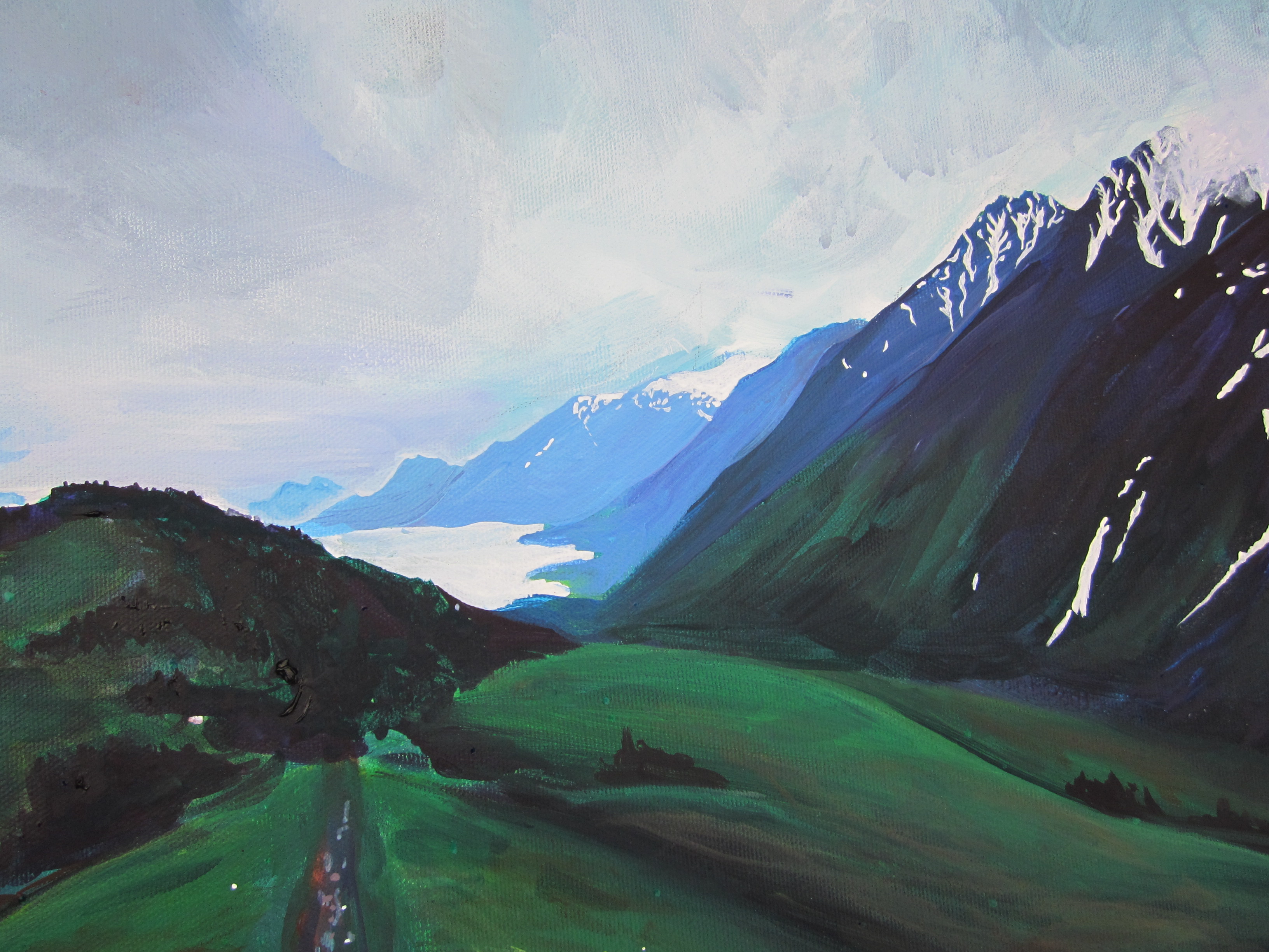 Lost Lake in Blue–one of my favorites, which I’m glad now belongs to a local Moose Pass artist. Acrylic on canvas.