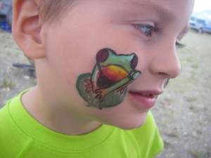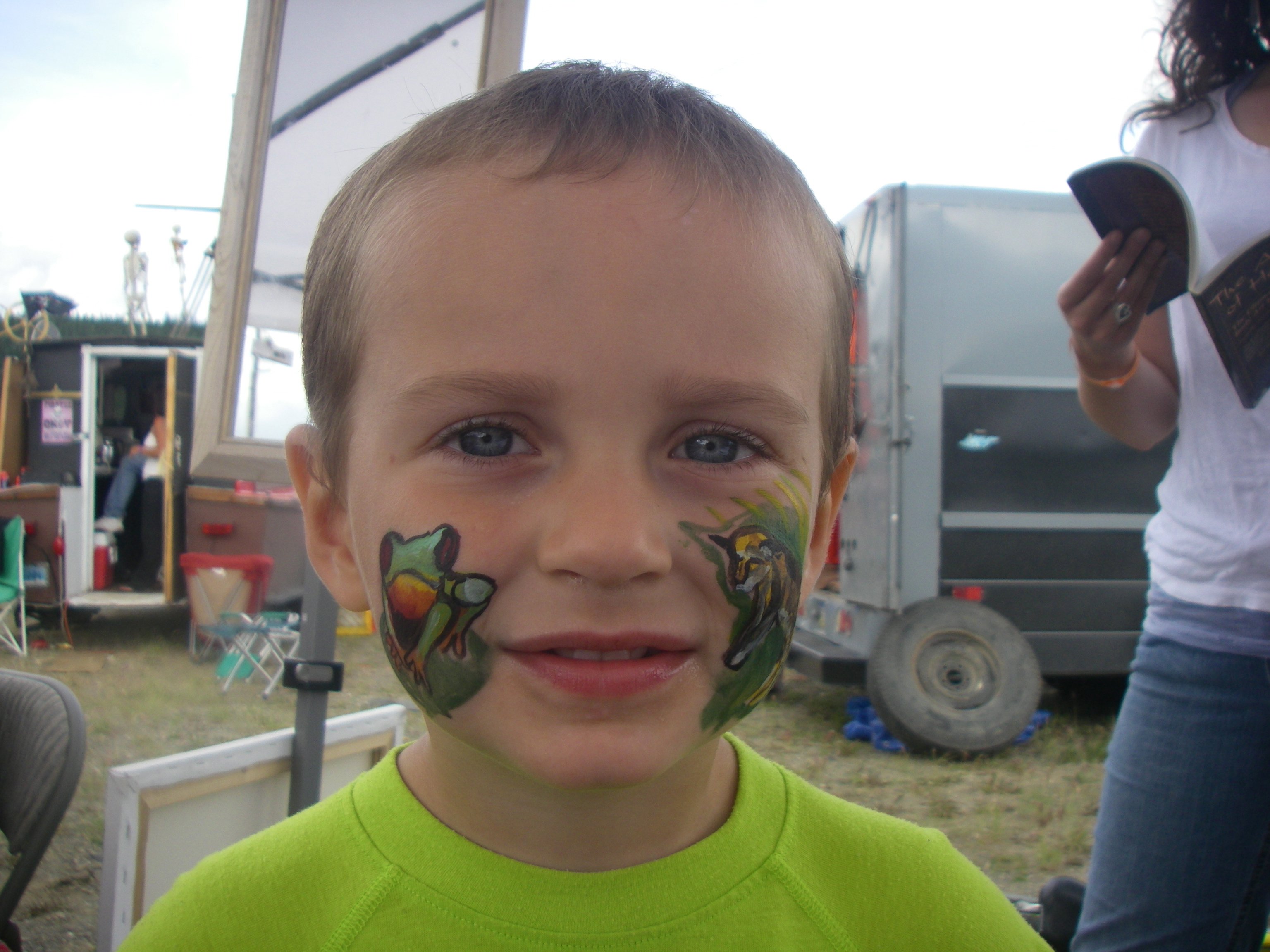 I face painted an iguana on Aubrey on Saturday–it lasted well through the day with only a little smudging during dancing!