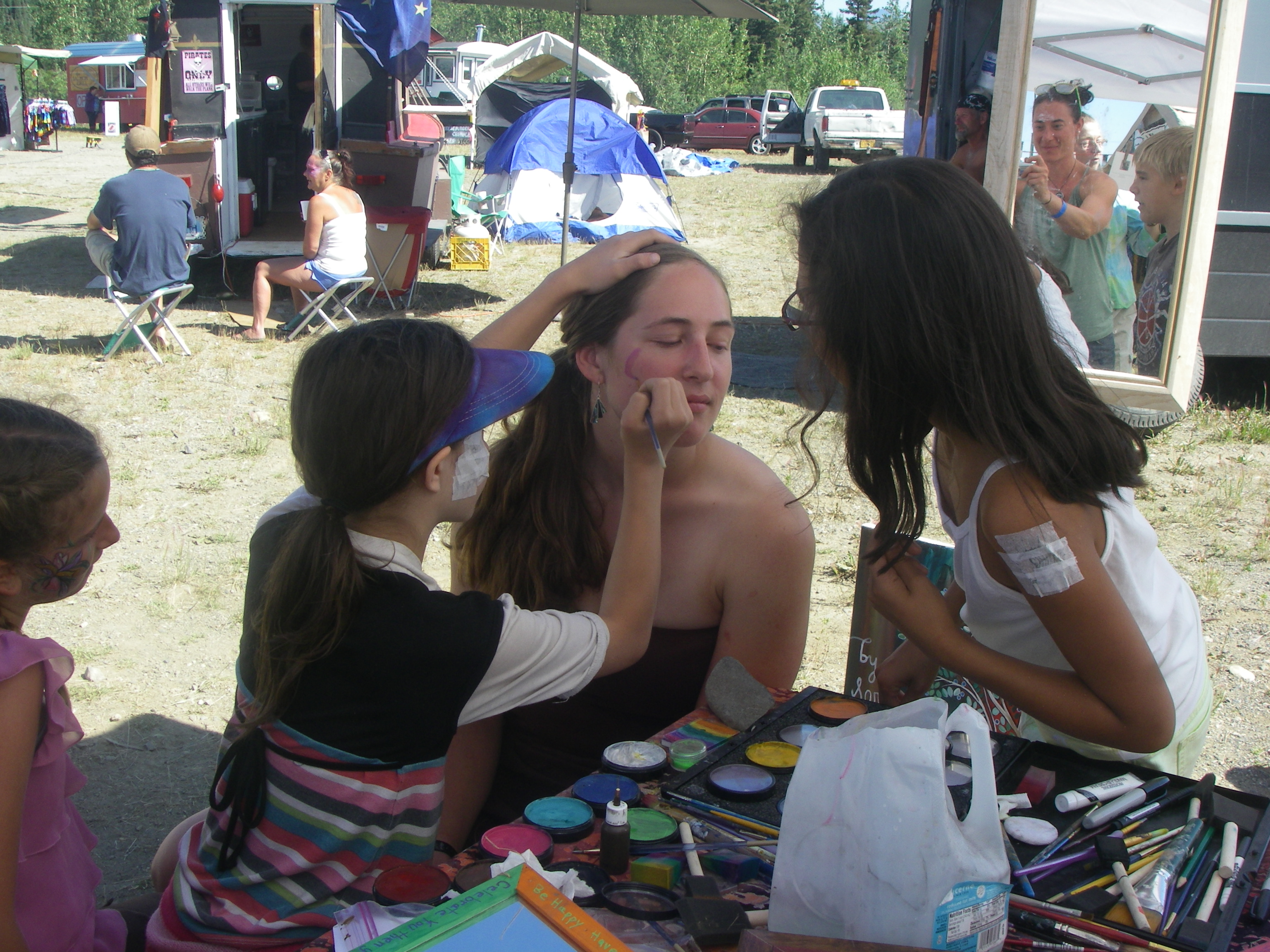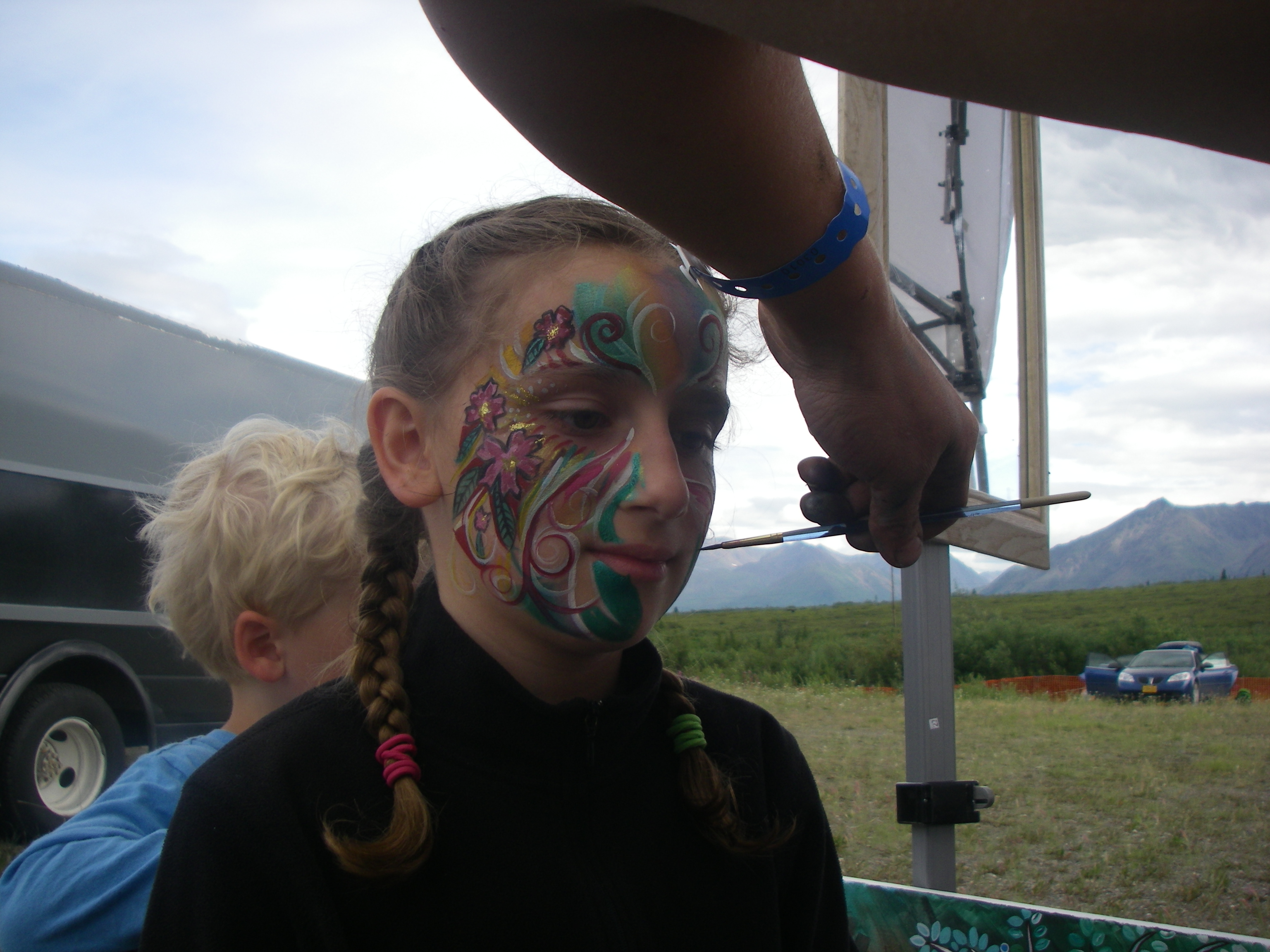 She asked for a henna cat on her forehead. The whole family was going to a wedding in Girdwood the next day. And they all got face henna!