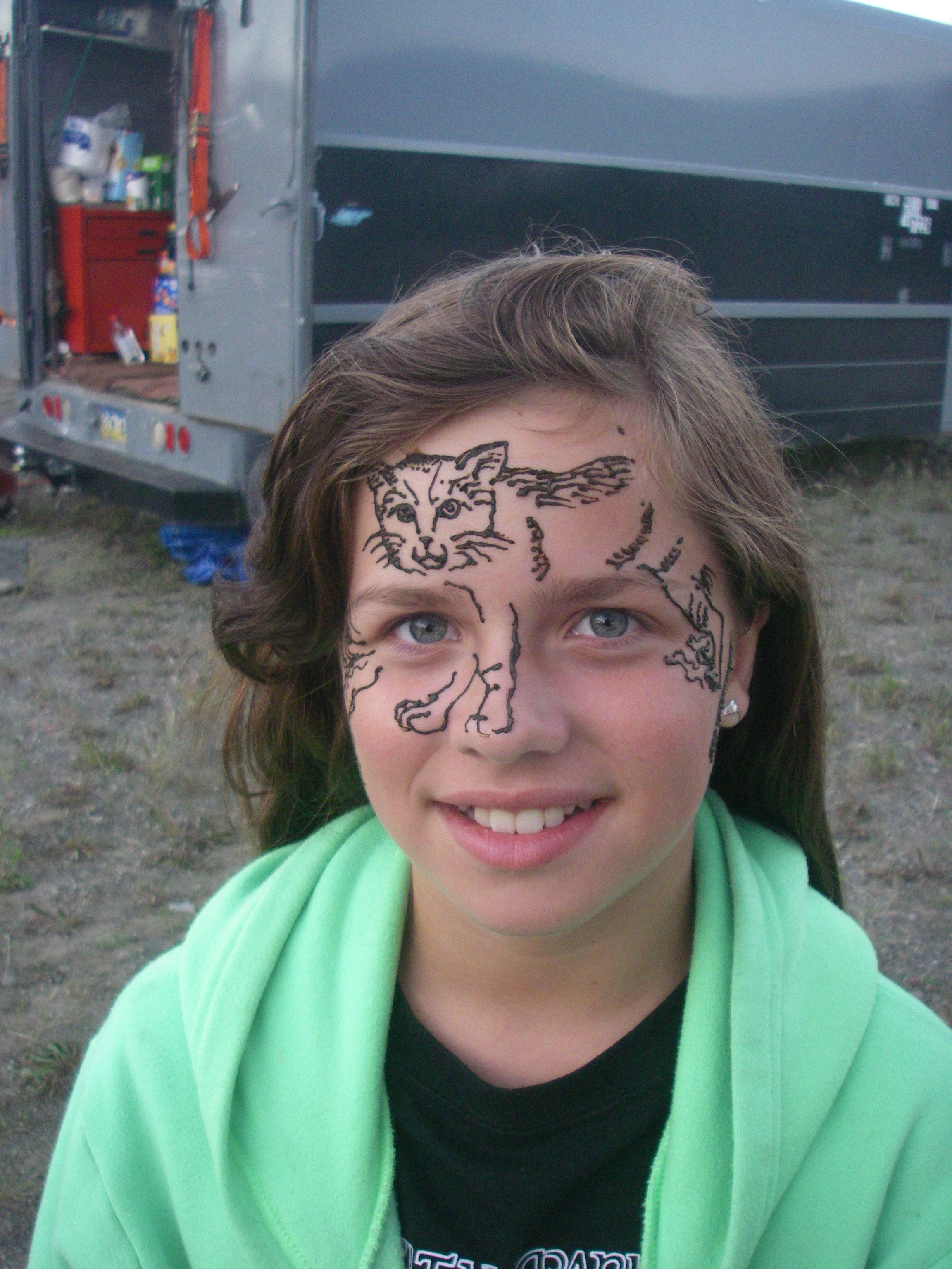 More proof of face painting designs–actually, only half the proof because most of the photographs got deleted from my phone. I’ve decided only to trust old-school cameras from now on.