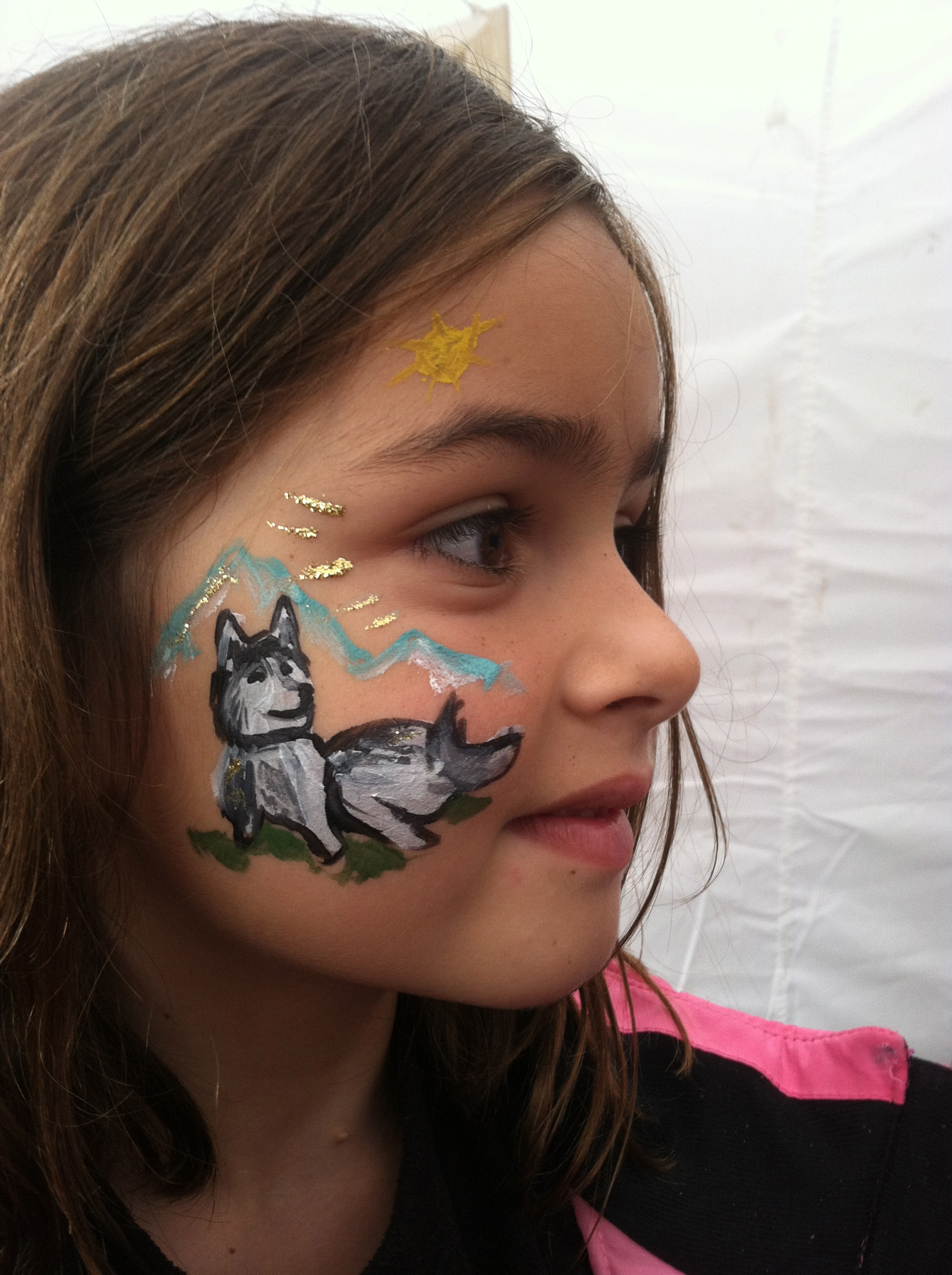 Blueberries! In honor of the festival theme. She came back later needing a touch-up…because she was in the pie eating contest! She even won it, and got more face paint.