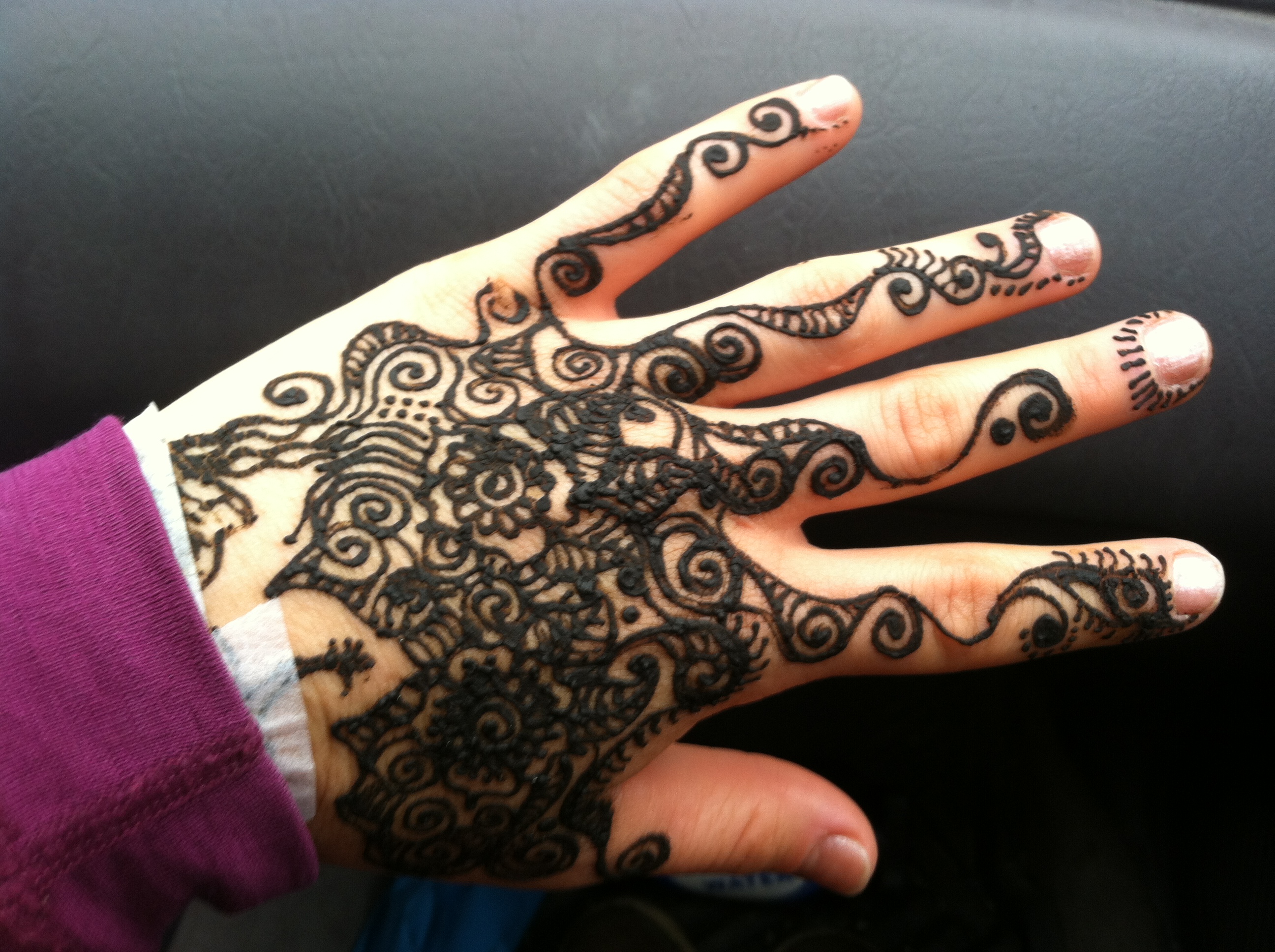 My very own sister showed up and got henna. In addition to the designs on her hand, she also got a rhino on her arm.