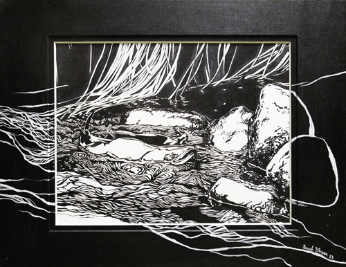 Biscuit (the dog, of course) starred as a silent auction item in the Moose Pass Community Bazaar last weekend. The illustration was from my July show at the Ranting Raven, A New Fairytale. The illustration was popular on Facebook and started a very minor bidding war in a silent auction. How else do we measure success?