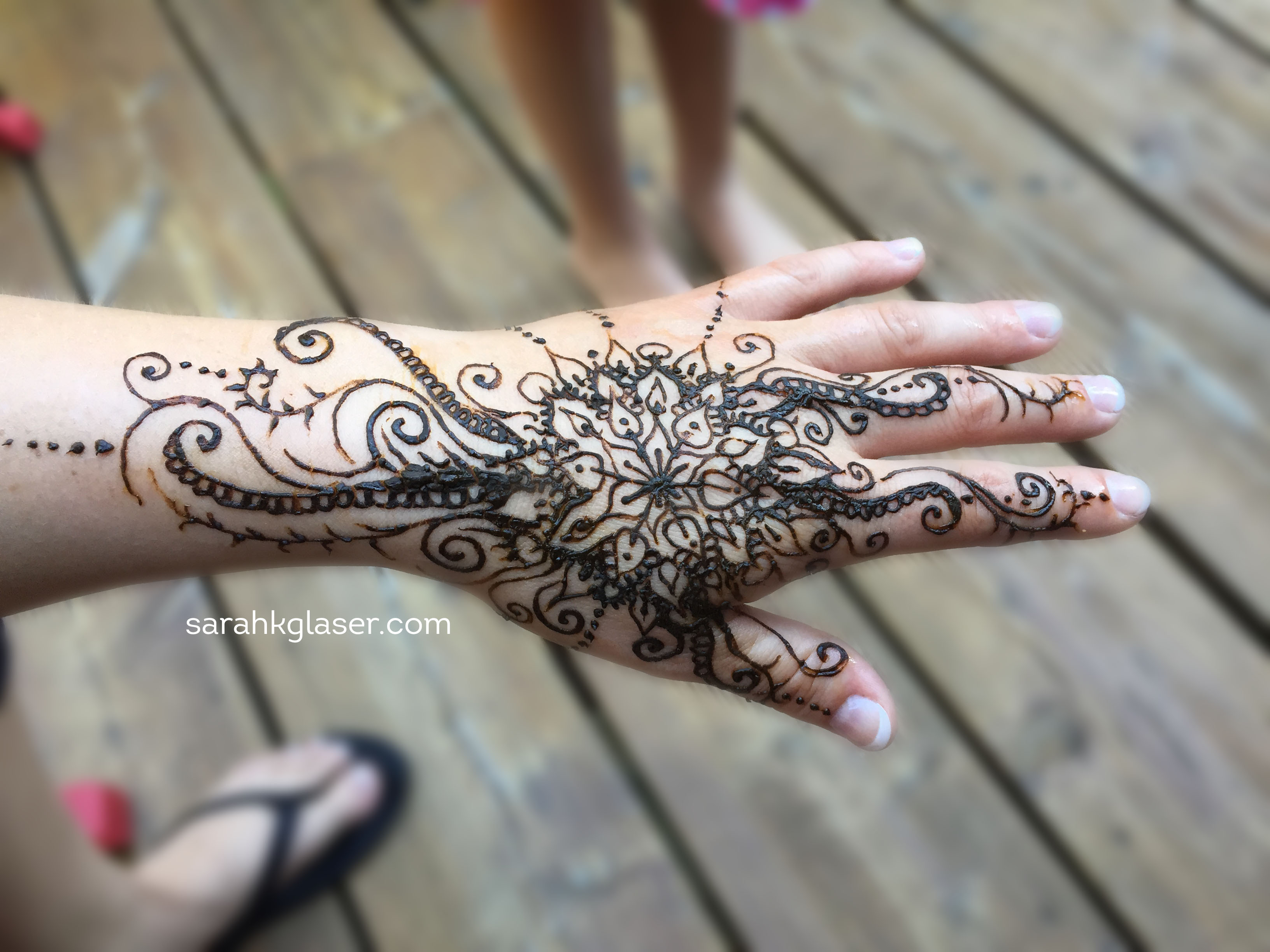 I felt so lucky to be a part of this wedding. The wedding party had rented out a lovely cabin in Girdwood the night before, and I got to do henna on the bride, mother-in-law, step-daughter-to-be, friends, and bridesmaids. They wanted something different than traditional mendhi wedding henna, so I came up with individual designs for each person, including the lacy flowers pictured below for the bride-to-be. I’m positive that their ceremony was absolutely stunning, and felt honored to get to be part of such a wonderful group of women!